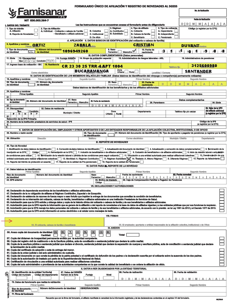 Diligenciar los datos del capitulo v relativos a la entidad responsable de la aliacion institucional o de ocio. Formulario unico de afiliacion y registro de novedades al sgsss no. Reporte de novedades 6. Certificado de afiliacion famisanar duration.