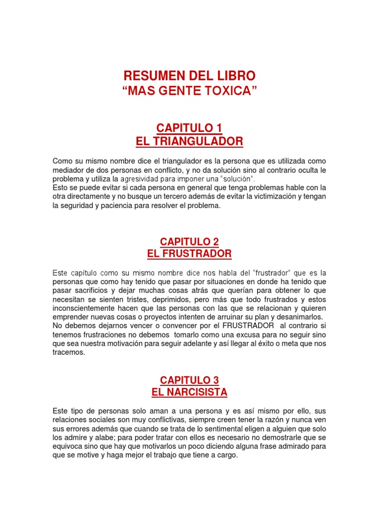 Descalificador o chismoso agresivo o falso cualquiera de estos tipos se enmarcan en una raza mayor denominada gente toxica y que el psicologo bernardo stamateas describe con maestria en un libro que muchos deberian consultar. Para personas emprendedoras que quieras conocer personas toxicas. Descalificador o chismoso agresivo o falso cualquiera de estos tipos se enmarcan en una raza mayor denominada gente toxica y que el psicologo bernardo stamateas describe con maestria en un libro que muchos deberian consultar. Libro gente toxica pdf twittear en nuestra vida cotidiana no podemos ayudar a encontrar a los alborotadores como patrones autoritarios y descalificadores vecinos quejumbrosos companeros de trabajo o estudio envidioso familiares siempre nos culpan a todos hombres y mujeres arrogantes irascibles o mentirosas.